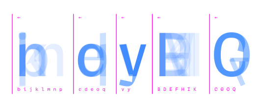 And finally, the remaining lowercase glyphs are adjusted visually to fit the rhythm of the other glyphs.
